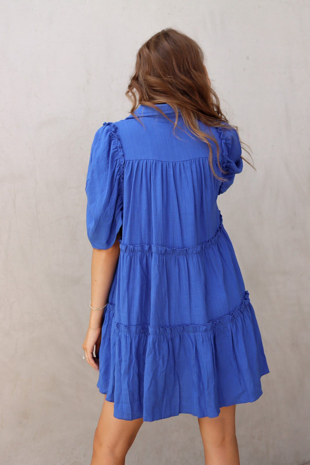 tiered ruffle silhouette collared babydoll dress