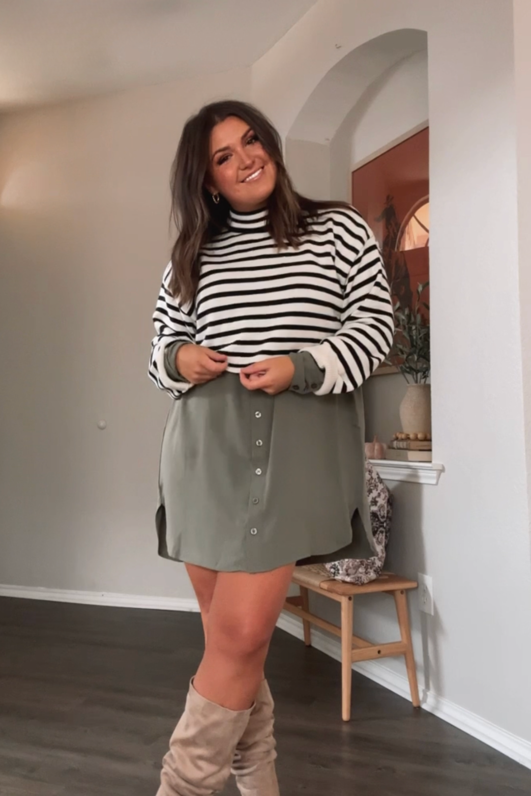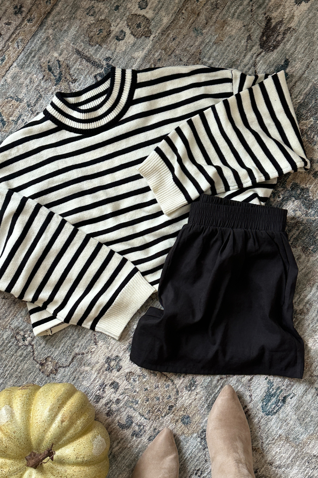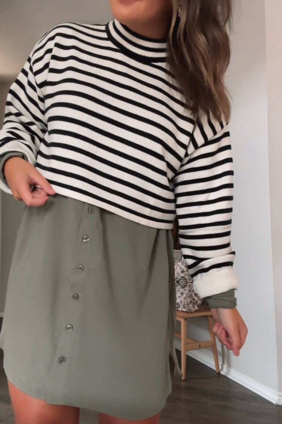 the perfect striped long sleeve mock neck sweater for layering or make a statement.