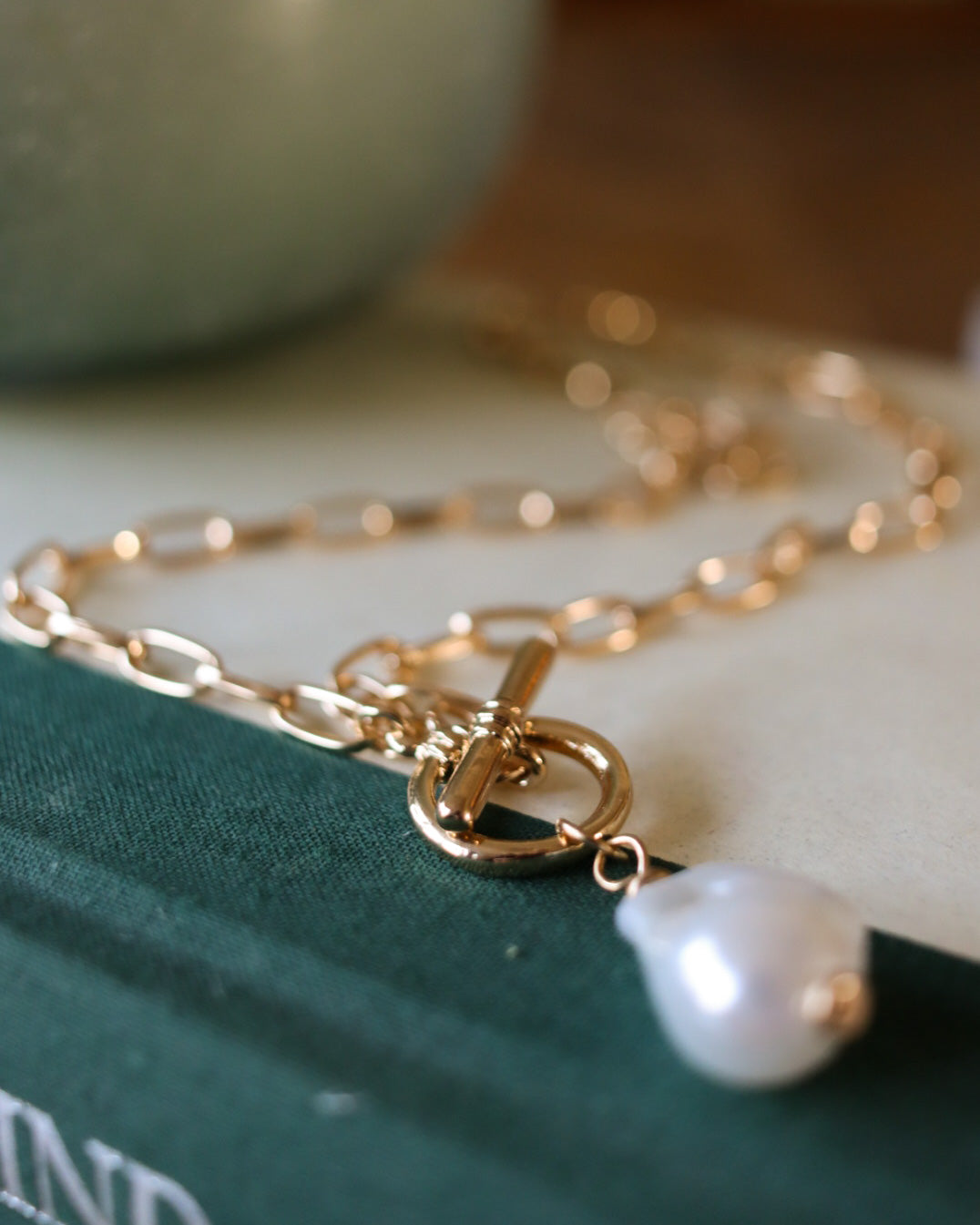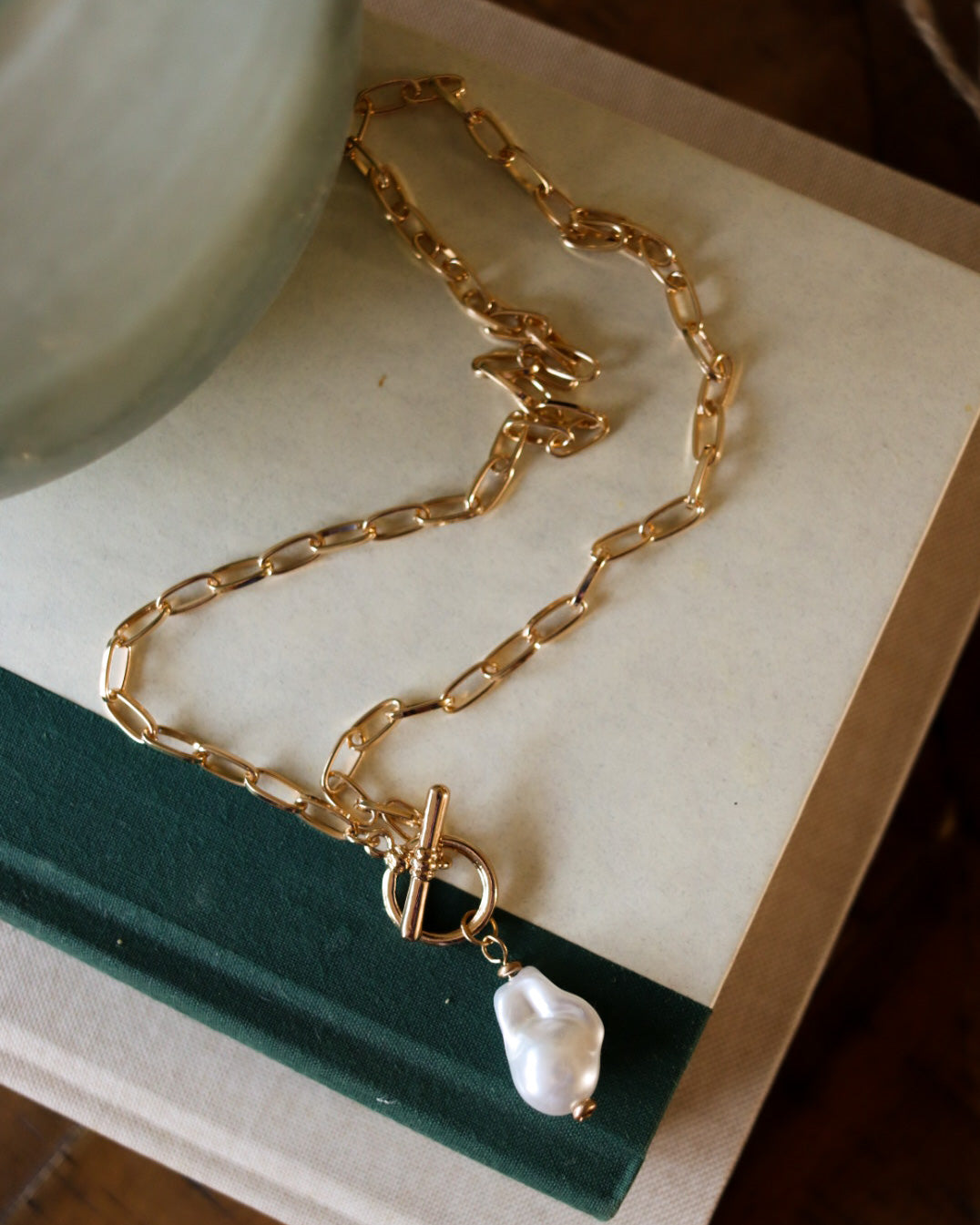 the perfect golden pearl chain necklace to layer of wear on its own